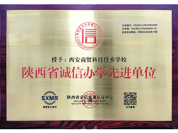 西安商貿(mào)科技技術(shù)學(xué)校成立于2004年,是一所隸屬于陜西省人力資源和社會保障廳的全日制省屬院校。學(xué)校坐落于西安市未央?yún)^(qū),毗鄰國家AAAA級漢城湖景區(qū),交通便利,環(huán)境優(yōu)美,設(shè)施完善,占地面積180余畝,綠化率達(dá)45%,三季有花、四季常青,被譽為“園林式校園”。秉承“厚德強技,知行合一”的校訓(xùn),堅持內(nèi)涵式發(fā)展,注重養(yǎng)成教育,培養(yǎng)德、智、體、美、勞全面發(fā)展的高素質(zhì)現(xiàn)代化技能人才。